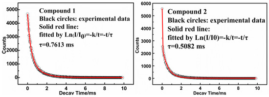 Luminescence decay curves of Complexes 1 and 2.