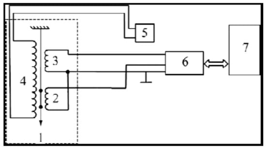 Pickup (2) and compensating (3) coils were placed symmetrically in magnetizing coil 4 (connected to a linear-sweep power supply 5) in which a magnetic field from 0 to 10 Oe with a frequency of 10–60 Hz was created.