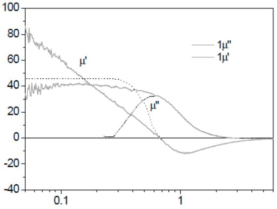 Permeability profile of a single layer, with a resonance frequency value of 0.67 GHz. (see [9]) The composition of microwires investigated here is Co68.15 Fe4.35 Si12.5B15 which has a very small saturation magnetostriction constant (λs) of 1.1 × 10−7.