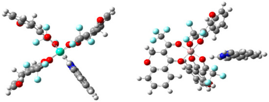 Optimized geometry structures of complexes (Eu3+ complex (left), Al3+ complex (right)).
