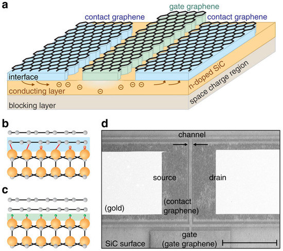 - Hertel, S.; Waldmann, D.; Jobst, J.; Albert, A.; Albrecht, M.; Reshanov, S.; Schöner, A.; Krieger, M.; Weber, H.B. Tailoring the graphene/silicon carbide interface for monolithic wafer-scale electronics. Nat. Commun. 2012, 3, 957. [Google Scholar] [CrossRef] [PubMed]