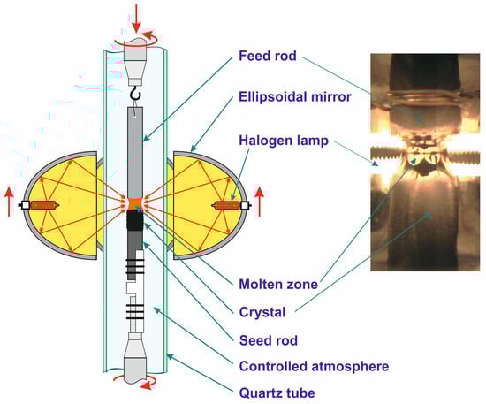 - Liang, B.; Lin, C.T. On the growth of underdoped Bi2Sr2CaCu2O8+δ single crystals by traveling solvent floating zone method. J. Cryst. Growth 2002, 237, 756–761. [Google Scholar] [CrossRef]