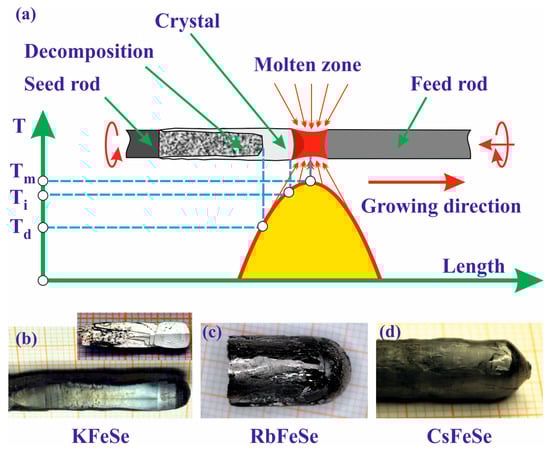 - Peng, F.; Liu, W.P.; Lin, C.T. Study of thermal behavior and single crystal growth of A0.8Fe1.81Se2 (A = K, Rb, and, Cs). J. Supercond. Nov. Magn. 2013, 26, 1205–1211. [Google Scholar] [CrossRef]