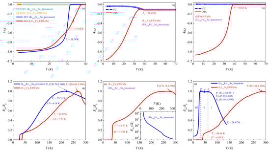 - Wang, D.M.; He, J.B.; Xia, T.-L.; Chen, G.F. Effect of varying iron content on the transport properties of the potassium-intercalated iron selenide KxFe2−ySe2. Phys. Rev. B 2011, 83, 132502. [Google Scholar] [CrossRef]