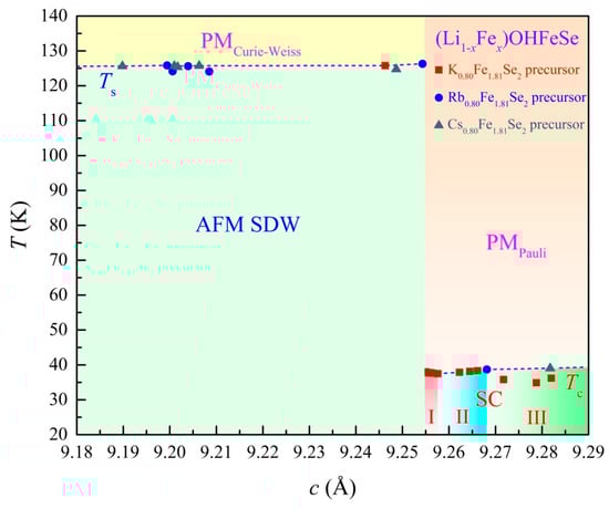 - Yu, G.; Zhang, G.Y.; Ryu, G.H.; Lin, C.T. Structure and superconductivity of (Li1−xFex)OHFeSe single crystals grown using AxFe2−ySe2 (A = K, Rb, and Cs) as precursors. J. Phys. Condens. Matter 2016, 28, 015701. [Google Scholar] [CrossRef] [PubMed]