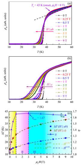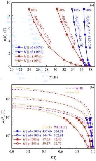 - Werthamer, N.R.; Helfand, E.; Hohenberg, P.C. Temperature and purity dependence of the superconducting critical field, Hc2. III. electron spin and spin-orbit effects. Phys. Rev. 1966, 147, 295–302. [Google Scholar] [CrossRef]