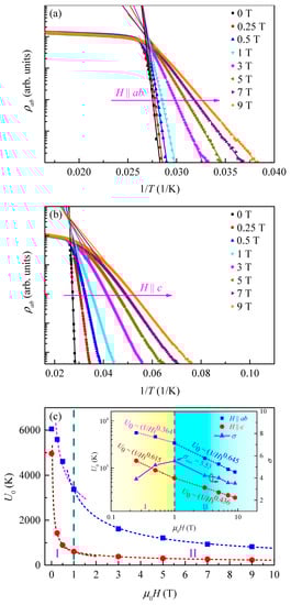 - Palstra, T.T.M.; Batlogg, B.; Schneemeyer, L.F.; Waszczak, J.V. Thermally activated dissipation in Bi2.2Sr2Ca0.8Cu2O8+δ. Phys. Rev. Lett. 1988, 61, 1662–1665. [Google Scholar] [CrossRef] [PubMed]
