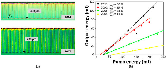 - Peterson, R.; Bliss, D.; Lynch, C.; Tomich, D. Progress in orientation-patterned GaAs for next-generation nonlinear optical devices. Proc. SPIE 2008, 6875. [Google Scholar] [CrossRef]