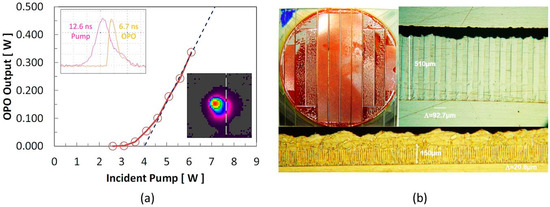 - Myers, L.E.; Bosenberg, W.R. Periodically poled lithium niobate and quasi-phase-matched optical parametric oscillators. IEEE J. Quantum Electron. 1997, 33, 1663–1672. [Google Scholar] [CrossRef]