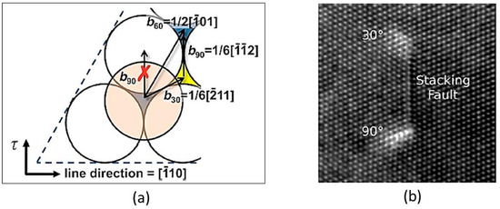 - Holt, D.B. Misfit dislocations in semiconductors. J. Phys. Chem. Solids 1966, 27, 1053–1067. [Google Scholar] [CrossRef]