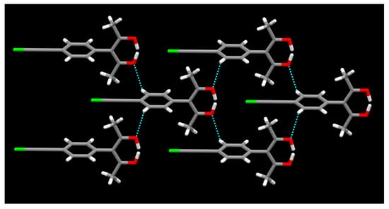 Second, there is a C-I⋯π interaction involving the triple bond (Figure 16) r(I⋯triple bond) 3.63 Å, θ (C-I⋯triple bond) 153.84°, θ (I⋯triple bond-I) 80.58° (geometric parameters calculated with respect to the center of the C≡C bond).