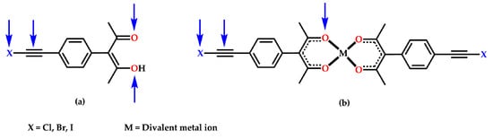 Possible halogen–bond acceptor sites; (a) ligand itself, (b) metal ligand complex.
