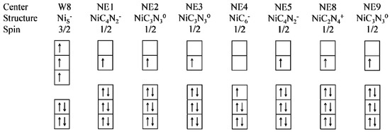 Finally, after annealing the diamond crystals at 2300 K, two other nitrogen–nickel paramagnetic NE8 and NE9 centers were found. The complicated EPR spectrum of NE8 was analyzed and described with the anisotropic