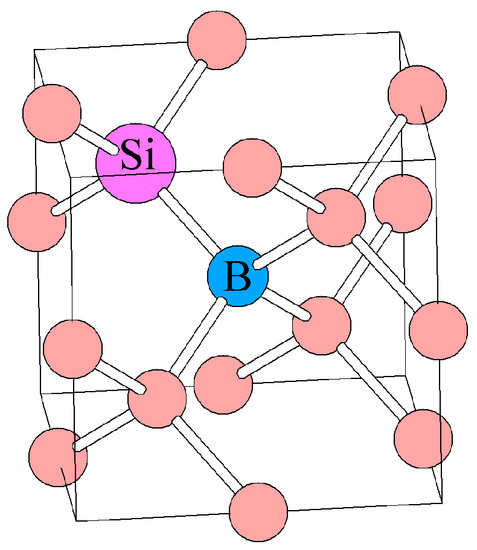 g-tensor values and principle axes are similar to those of the N3 paramagnetic center, which consisted of titanium and nitrogen atoms at the adjacent carbon sites. Thus, the 720 nm system was tentatively ascribed to the center containing silicon and boron atoms at the adjacent carbon sites (