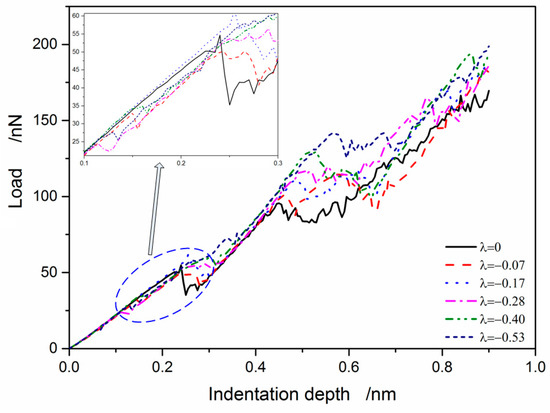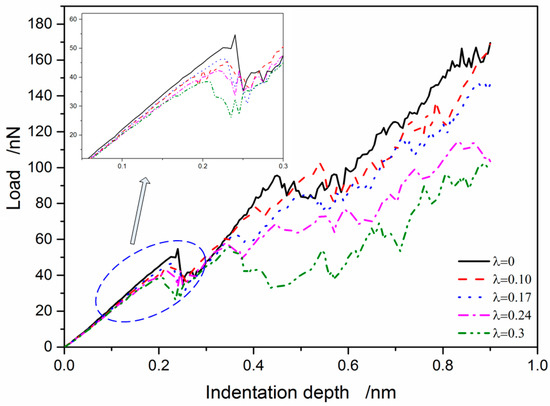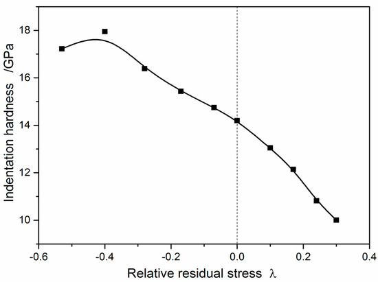 which is shown in Figure 6. It can be seen that the indentation hardness H is 14.32 GPa (λ = 0). Thus, from the well-known relationship between yield stress and hardness: