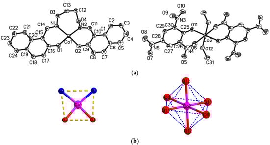 - Dong, W.K.; Lan, P.F.; Zhou, W.M.; Zhang, Y. Salamo-type trinuclear and tetranuclear cobalt(II) complexes based on a new asymmetry salamo-type ligand: Syntheses, crystal structures, and fluorescence properties. J. Coord. Chem. 2016, 69, 1272–1283. [Google Scholar] [CrossRef]