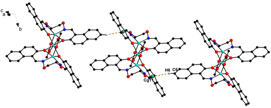 View of 1D supramolecular structure of the complex 2 showing the formation C-H···π stacking interaction.
