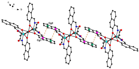 View of 1D supramolecular structure of the complex 2 showing the formation π···π stacking interaction.