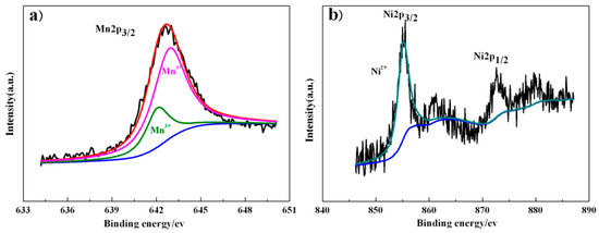 X-ray photoelectron spectra of (a) Mn 2p and (b) Ni 2p of S12.