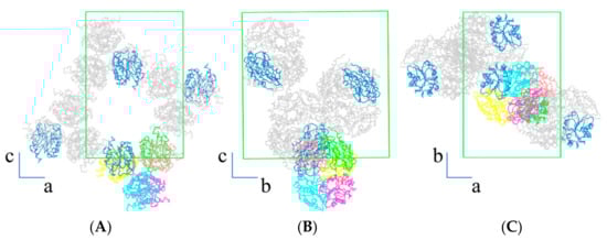 - Matthews, B.W. Solvent content of protein crystals. J. Mol. Biol. 1968, 33, 491–497. [Google Scholar] [CrossRef]