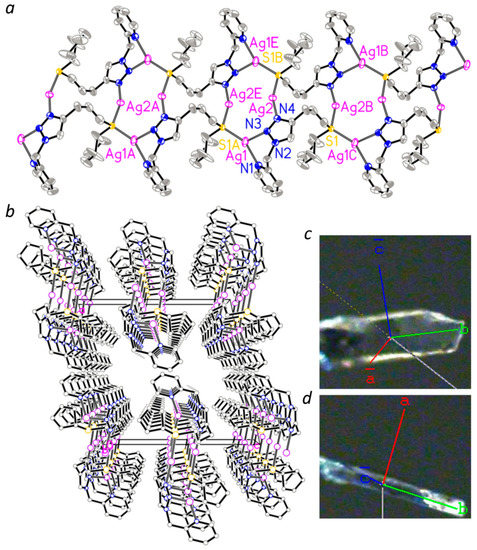 - Bahemmat, S.; Ghassemzadeh, M.; Neumüller, B. A new silver(I) coordination polymer containing 3-methylthio-(1H)-1,2,4-triazole as precursor for preparation of silver nanorods. Inorg. Chim. Acta, 2015, 435, 159–166. [Google Scholar] [CrossRef]