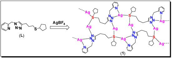 - Khlobystov, A.N.; Blake, A.J.; Champness, N.R.; Lemenovskii, D.A.; Majouga, A.G.; Zyk, N.V.; Schröder, M. Supramolecular design of one-dimensional coordination polymers based on silver(I) complexes of aromatic nitrogen-donor ligands. Coord. Chem. Rev. 2001, 222, 155–192. [Google Scholar] [CrossRef]