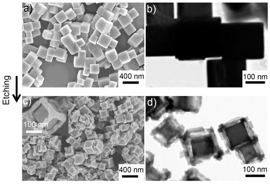 - Sui, Y.; Fu, W.; Zeng, Y.; Yang, H.; Zhang, Y.; Chen, H.; Li, Y.; Li, M.; Zou, G. Synthesis of Cu2O nanoframes and nanocages by selective oxidative etching at room temperature. Angew. Chem. Int. Ed. 2010, 49, 4282–4285. [Google Scholar] [CrossRef] [PubMed]