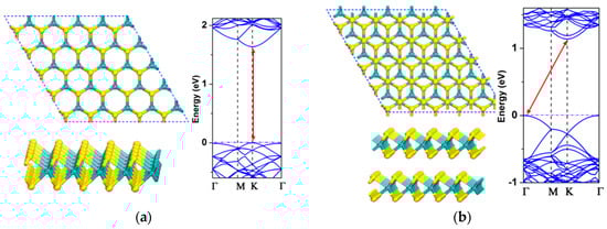 A 5 × 5 supercell geometric structure and electron structure of the MoS2 monolayer (a) and bilayer (b) []. Copyright under CC BY license.