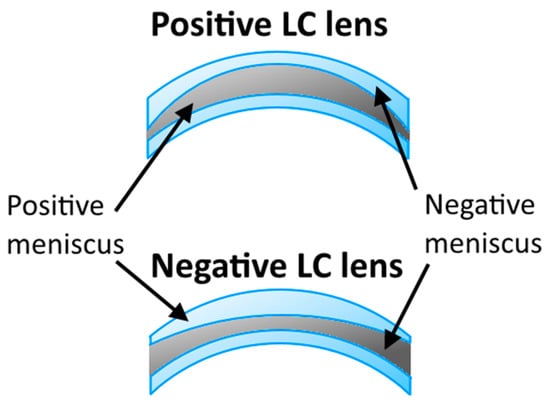 - Concave or convex solid LC lenses: The LC layer is shaped into a curved, or other lensing geometry; the so-called “solid lenses” [,,,,].