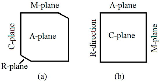 Schematic of the orientation of (a) A-plane and (b) C-plane sapphire crystals.