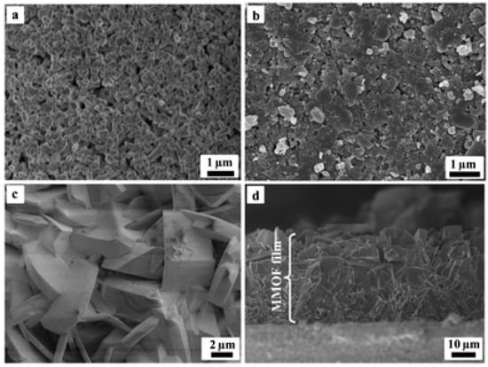 Top view SEM pictures of Ni2(L-asp)2(bipy) membranes grown for (a) 1 h, (b) 2 h, (c) 3 h, and (d) 4 h at 150 °C (adapted with permission from ref. [79]).