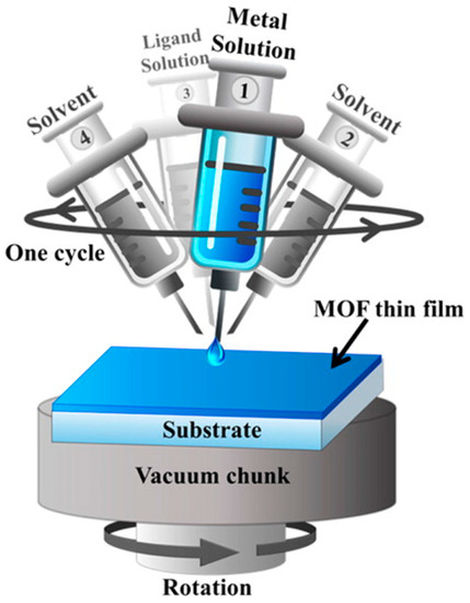 Schematic Representation of the Setup employed for the Fabrication of MOF Thin Films Using the LPE Approach Adapted to the Spin Coating Method (adapted with permission from ref. [54]).