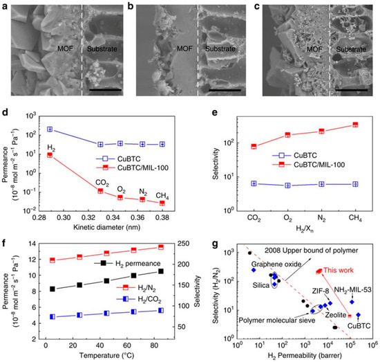 - Guo, H.; Zhu, G.; Hewitt, I.J.; Qiu, S. “Twin copper source” growth of metal-organic framework membrane: Cu3(BTC)2 with high permeability and selectivity for recycling H2. J. Am. Chem. Soc. 2009, 131, 1646–1647. [Google Scholar] [CrossRef] [PubMed]