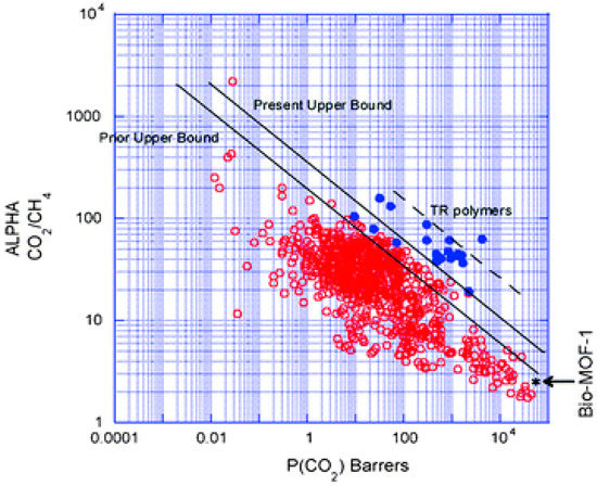 - Robeson, L.M. The upper bound revisited. J. Membr. Sci. 2008, 320, 390–400. [Google Scholar] [CrossRef]