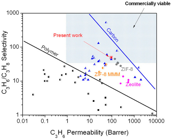 - Liu, D.; Ma, X.; Xi, H.; Lin, Y.S. Gas transport properties and propylene/propane separation characteristics of ZIF-8 membranes. J. Memb. Sci. 2014, 451, 85–93. [Google Scholar] [CrossRef]