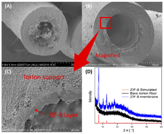 - Eum, K.; Ma, C.; Koh, D.-Y.; Rashidi, F.; Li, Z.; Jones, C.W.; Lively, R.P.; Nair, S. Zeolitic imidazolate framework membranes supported on macroporous carbon hollow fibers by fluidic processing techniques. Adv. Mater. Interfaces 2017, 4, 1700080–1700090. [Google Scholar] [CrossRef]