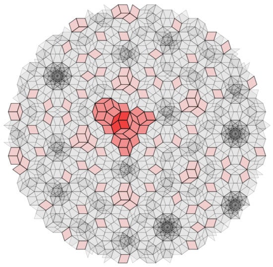 19]. Although Penrose tiling does not have the perfect periodic order that crystals possess, it has aperiodic order that is non-local and repetitive, in other words, given any local patch of the tiling of any size, one could find an infinite number of identical patches in a full (infinite) Penrose tiling. The following properties of quasicrystals make them extremely interesting candidates for a game of life simulation: