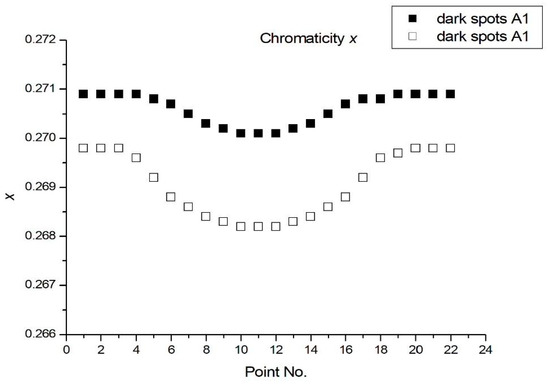 Variation of CIE x for dark spots defect of A1 and A2.