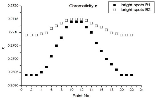 Variation of CIE x for bright spots of B1 and B2.