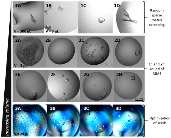 - Obmolova, G.; Malia, T.J.; Teplyakov, A.; Sweet, R.W.; Gilliland, G.L. Protein crystallization with microseed matrix screening: Application to human germline antibody Fabs. Acta Crystallogr. F Struct. Biol. Cryst. 2014, 70, 1107–1115. [Google Scholar] [CrossRef] [PubMed]