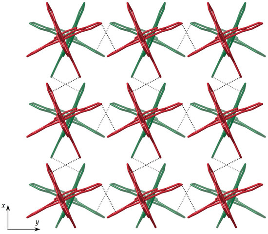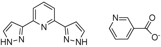 In order to avoid the inclusion of undesired counterions in the spin-crossover network, it is necessary to obtain a solution without any other hydrogen-bond acceptors that could be in competition with the nicotinate anions. To achieve this goal, it has been shown that the use of a metathesis reaction gives excellent results [32,35,36,37]. Based on this, we performed a metathesis reaction of silver nicotinate with [Fe(bpp)2]Cl2 that resulted in the precipitation of AgCl, yielding a solution free from the undesired chloride anions.