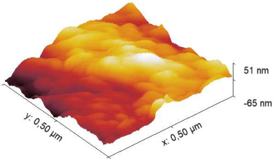 Topography of the Hydroxyapatite obtained by Pinpoint method.Due to the soft sample, a setpoint of 30 nN–40 nN was used in order to appreciate the shape of the grains on the surface.