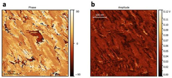 (a) The PFM phase and (b) the PFM amplitude of the material.