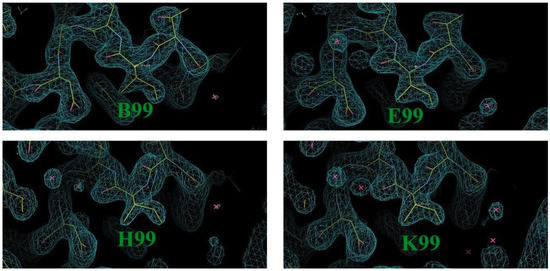 - Afonine, P.V.; Grosse-Kunstleve, R.W.; Echols, N.; Headd, J.J.; Moriarty, N.W.; Mustyakimov, M.; Terwilliger, T.C.; Urzhumtsev, A.; Zwart, P.H.; Adams, P.D. Towards automated crystallographic structure refinement with phenix.refine. Acta Crystallogr. D Biol. Crystallogr. 2012, 68, 352–367. [Google Scholar] [CrossRef] [PubMed]