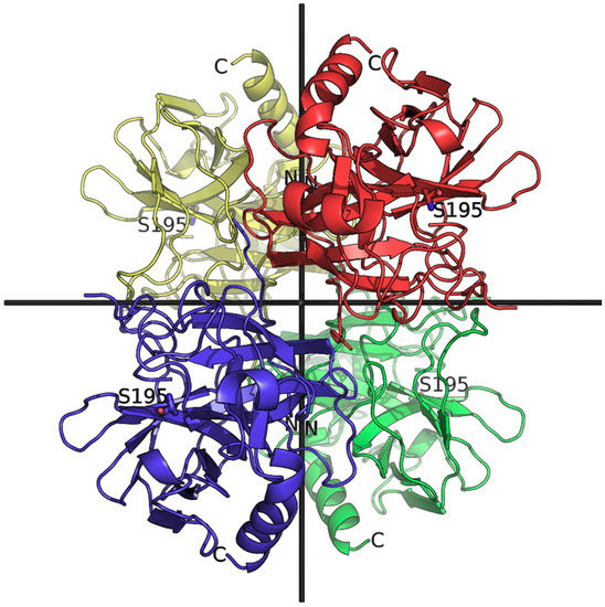 - Tsukada, H.; Blow, D.M. Structure of alpha-chymotrypsin refined at 1.68 A resolution. J. Mol. Biol. 1985, 184, 703–711. [Google Scholar] [CrossRef]