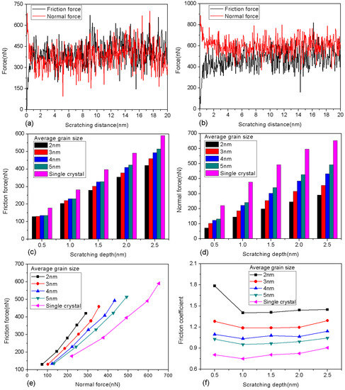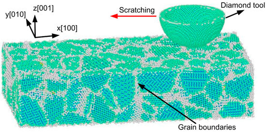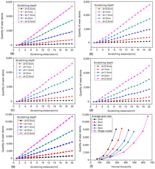 - Gao, Y.; Brodyanski, A.; Kopnarski, M.; Urbassek, H.M. Nanoscratching of iron: A molecular dynamics study of the influence of surface orientation and scratching direction. Comput. Mater. Sci. 2015, 103, 77–89. [Google Scholar] [CrossRef]