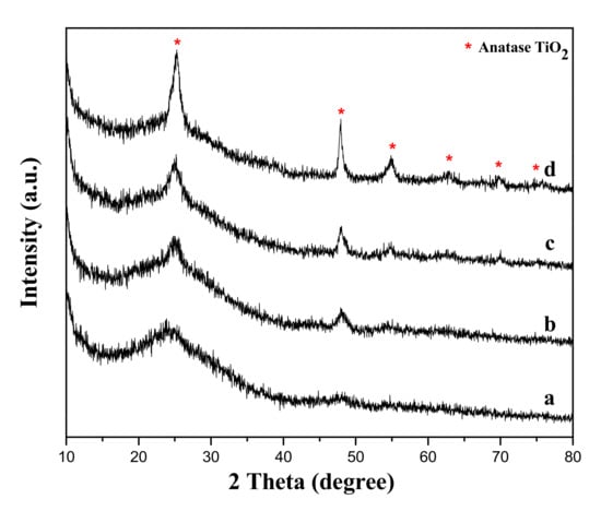- Yu, J.; Yu, J.C.; Ho, W.; Leung, M.K.P.; Cheng, B.; Zhang, G.; Zhao, X. Effects of alcohol content and calcination temperature on the textural properties of bimodally mesoporous titania. Appl. Catal. A Gen. 2003, 255, 309–320. [Google Scholar] [CrossRef]