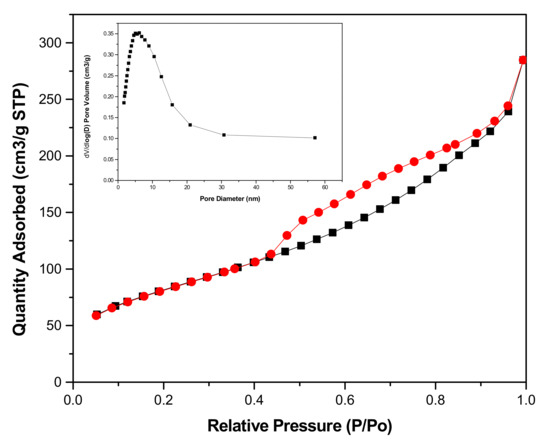 3.3. BET Surface Areas and Pore Size Distributions