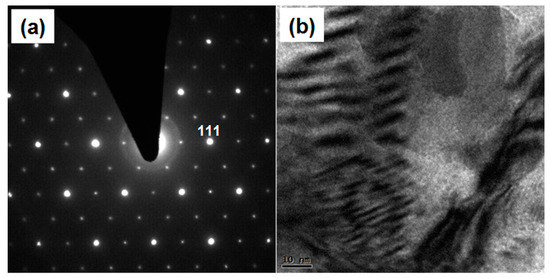 (a) Electron diffraction patterns of PLN-0.07PT single crystals exhibiting super-lattice reflections and (b) micro-domains configurations under TEM.