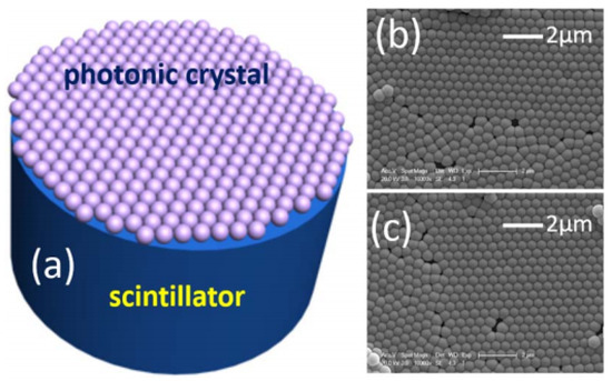 As mentioned previously, the application of photonic crystal technology to scintillator-based radiation detectors is still in its infancy, and only rather standard nano-lithography or direct embossing approaches have been considered so far. Scaling-up inexpensive production methods is a major concern for the deployment of this promising technology. The impressive development of nanotechnologies offers a vibrant ecosystem and fascinating perspectives for scalable and inexpensive production methods. Of particular interest are the direct embossing of high refractive index polymers, colloidal approaches and bottom-up self-assembly techniques.